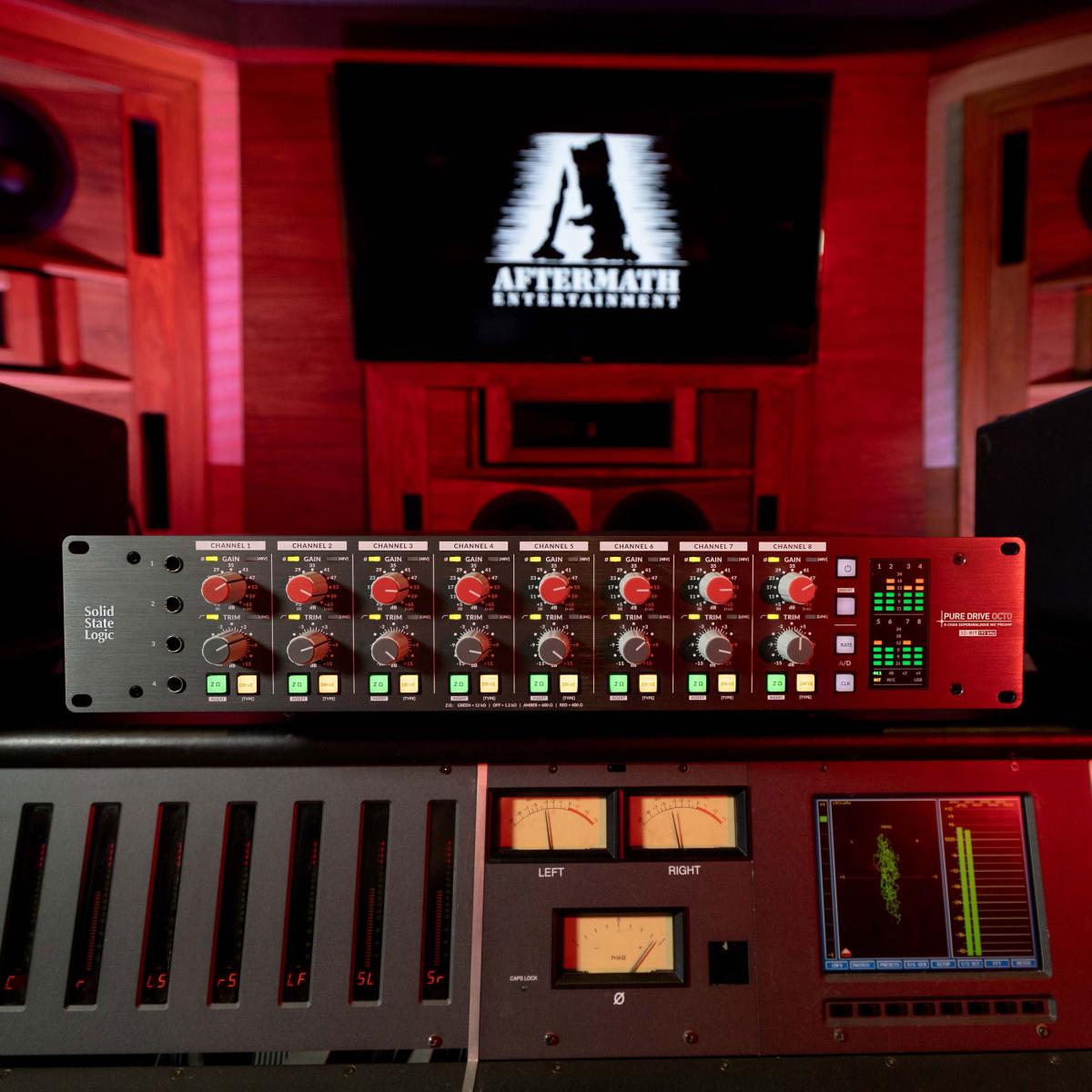 Die neue PURE DRIVE OCTO-Rackeinheit (ein 4-Kanal-Modell namens PURE DRIVE QUAD ist ebenfalls erhältlich) verfügt über eine integrierte USB-Soundkarte sowie einen flexiblen digitalen und analogen Ein- und Ausgangsbereich für die einfache Integration in einen hybriden Workflow. Dank dieser umfassenden Ein- und Ausgangsmöglichkeiten können Focus sowie andere Toningenieure und Produzenten bei Aftermath den SSL-Sound in jedes ihrer Projekte einbinden, selbst wenn die SSL-Konsole des Studios gerade für eine andere Session belegt ist. „Wenn ich über ein SSL-Pult arbeiten würde, könnte ich einige der Filter, etwas von der Attack und etwas von der Wärme nutzen. Jetzt kann ich das über mein PURE DRIVE OCTO-Interface erreichen. Das finde ich großartig; ich halte das für phänomenal!“, sagt er.