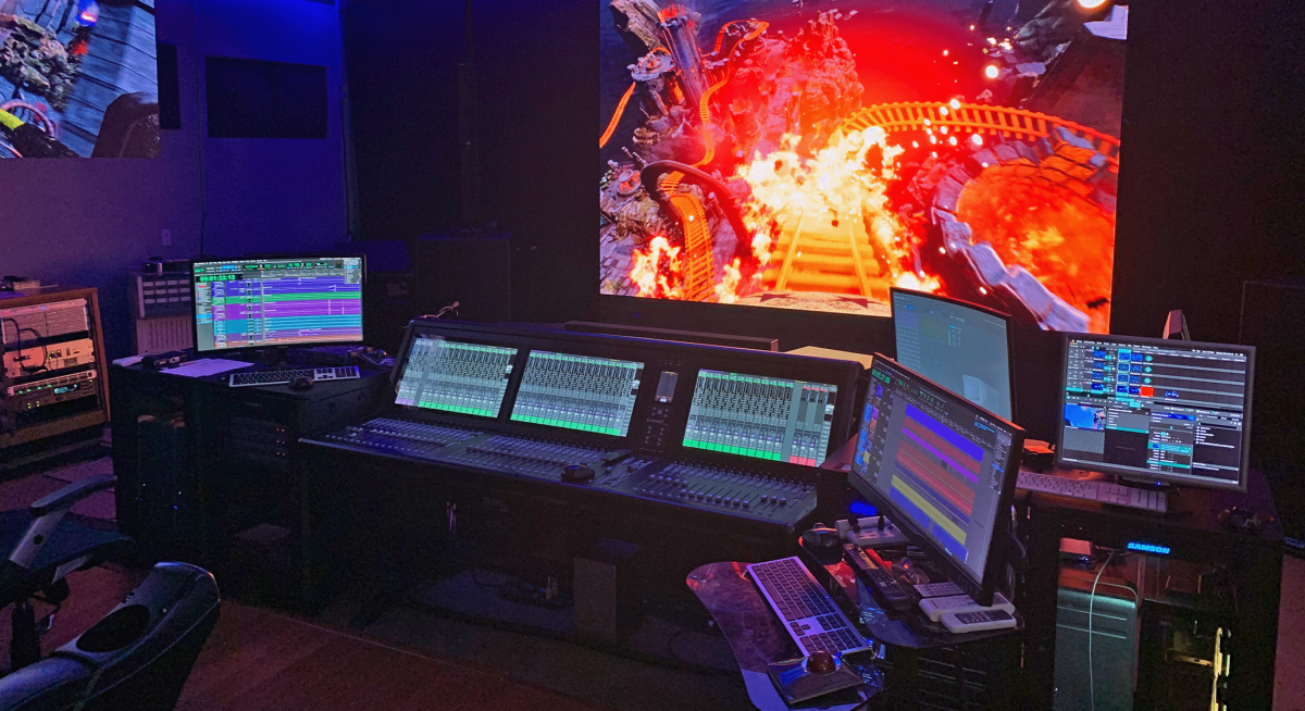 Camps Dolby-Atmos-Workflow ist hybrid, erklärt er; das Panning für die Projekt-Beds erfolgt über das System T und nicht am Computer. „Ich verwende drei separate Beds: Dialog, Musik und Effekte“, sagt er. „Außerdem nutze ich das Mischpult für das Objekt-Routing. Das Signal kommt über MADI aus Pro Tools, wird über Dante in das Mischpult eingespeist und wieder ausgegeben und gelangt schließlich in einen Objektkanal. Da das Mischpult keinen Zugriff auf das Objekt-Panning hat, verwende ich ein separates Panning-Tool, um über das Dante-Netzwerk auf die Objektkanäle zuzugreifen. Der Audio-Fluss verläuft jedoch aus Pro Tools über das Mischpult in den Dolby Atmos-Renderer. Das ist der einzige Moment, in dem ich etwas innerhalb von Pro Tools nutze.“