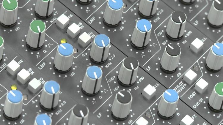 Zukünftiges analoges Inline-Mischpult, das einen sofortigen, mühelosen und vollständigen Abruf aller Bearbeitungs-, Routing-, Gain- und Pan-Einstellungen ermöglicht,…