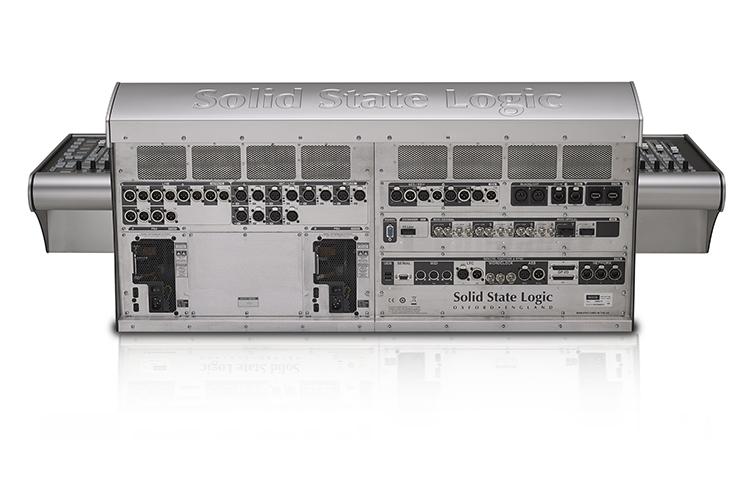 Standard-MADI-Anschlusskonfiguration: acht MADI-Anschlüsse; sechs Koaxial- und zwei Glasfaserpaare, die unabhängig voneinander oder in einer redundanten Konfiguration genutzt werden können. Es gibt einen zusätzlichen Effektschleifenanschluss sowie einen separaten optischen MADI-Anschluss (Ausgang/Eingang), der für den Anschluss eines externen Effektgeräts wie beispielsweise eines Systems mit Waves Multirack oder eines VST-Effekt-Hosts vorgesehen ist. Ein redundantes Paar SSL Blacklight II-Glasfaseranschlüsse kann installiert werden, um 256 bidirektionale Kanäle bei 96 kHz zwischen Mischpult und Bühne bereitzustellen. Eine optionale lokale Dante-Karte bietet 32x32 Kanäle I/O bei 96 kHz über eine redundante Dante-Verbindung. Die Dante-Schnittstelle ermöglicht die Sample-Rate-Konvertierung zwischen allen Dante-Netzwerkraten. Ein optionales redundantes Paar SSL X-Light-Anschlüsse stellt 256 bidirektionale Kanäle bei 96 kHz zwischen Konsole und Bühne bereit, wobei ein einziges Kabel mit robusten Steckern verwendet wird. Die Rückseite verfügt außerdem über Anschlüsse für MIDI, LTC, Wordclock und GP-I/O. Ein zweites redundantes Netzteil ist serienmäßig enthalten.