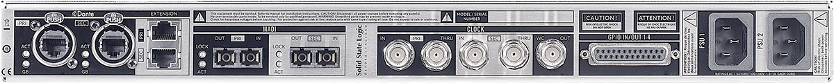 • Redundant: Netzteil, MADI-Anschlüsse, Dante-Anschlüsse, Sync-Eingang – vollständige Redundanz gemäß Broadcast-Spezifikationen.