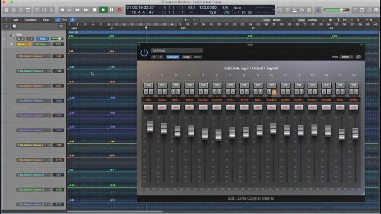 Das „Delta Control Matrix“-Plug-in mit 16 Fadern bietet Logic-Anwendern Kompatibilität und stellt gleichzeitig eine Alternative für Nutzer des „Single Fader“-Plug-ins dar. Das Plug-in ist in allen Formaten erhältlich, darunter AAX/AU/VST3/VST. Das 16-Fader-Plug-in ermöglicht es Anwendern, Automationen für die 16-Kanal-Fader, Mutes und FX-Sends von Matrix aus einem einzigen Plug-in-Fenster zu schreiben, wodurch die inhärente Einschränkung von Logic umgangen wird, Daten jeweils nur in ein einziges Plug-in schreiben zu können.