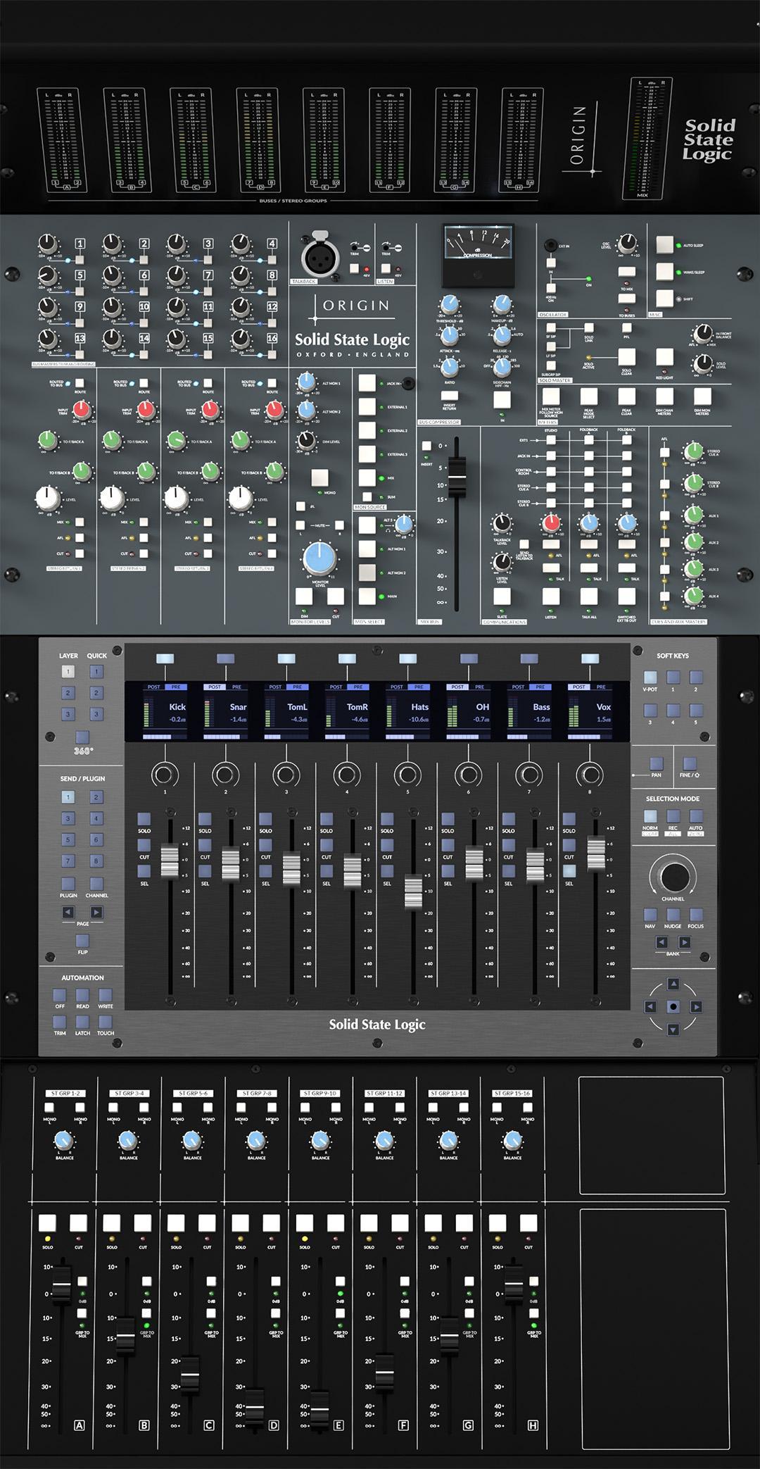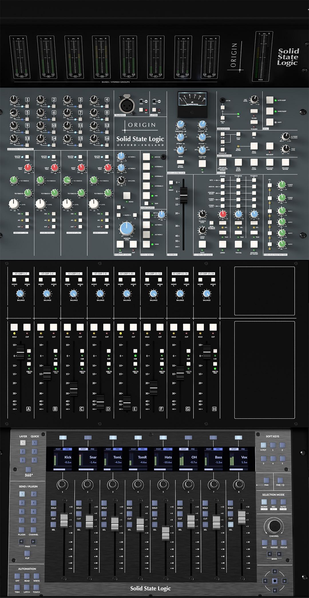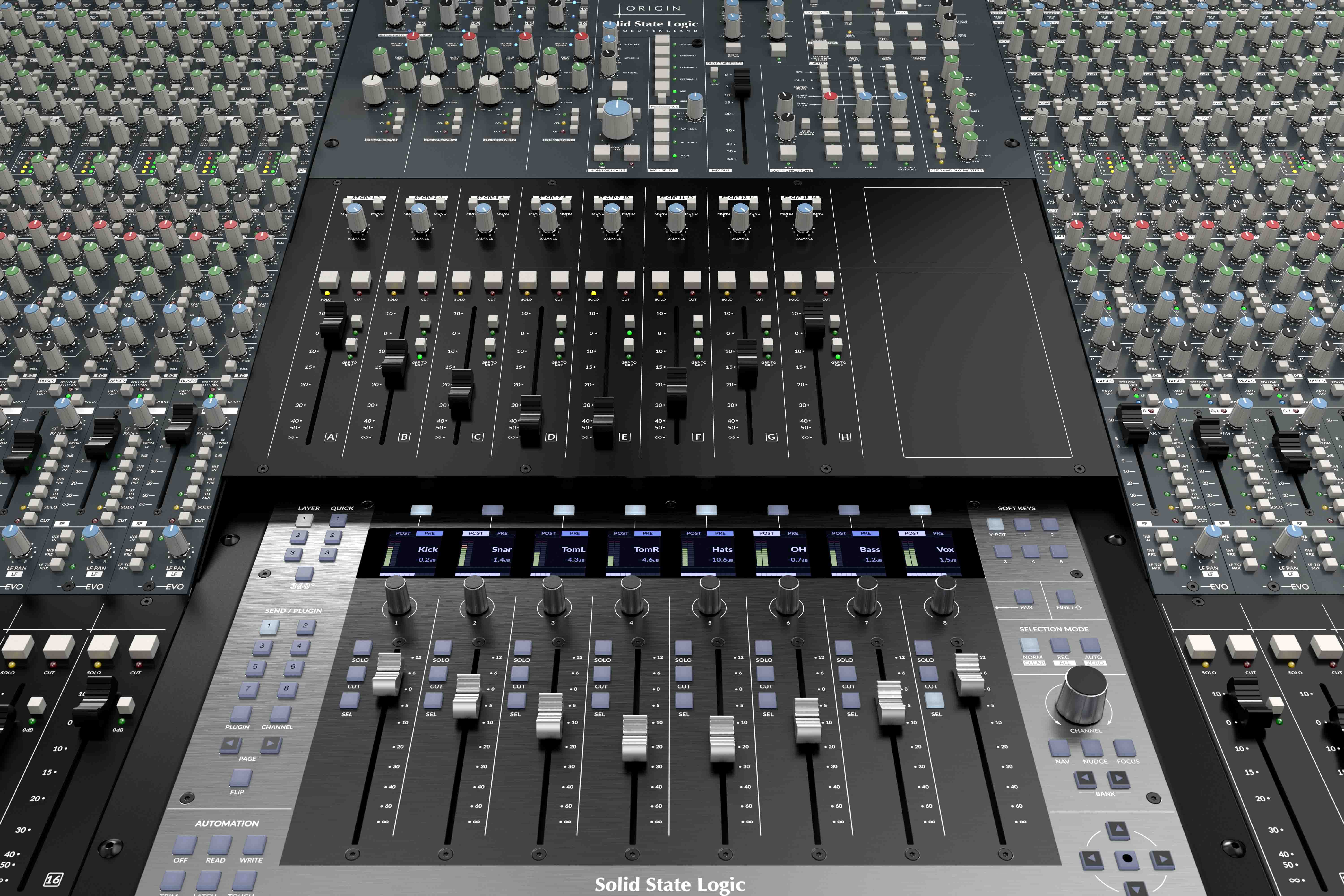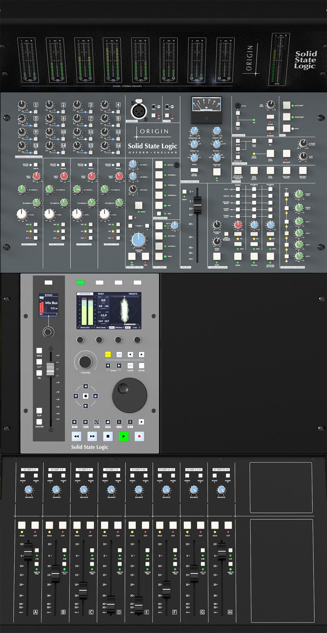 Ein charakteristisches Merkmal von SSL-Mischpulten ist ihr Mix-Bus, und das gilt auch für das ORIGIN EVO. Im Vergleich zu anderen großformatigen SSL-Mischpulten verfolgen das ORIGIN und das ORIGIN EVO einen neuen Ansatz, um dank eines neuen, vollständig analogen Designs eine hervorragende Rauschunterdrückung und extrem geringe Verzerrung zu erzielen. Ein Teil der Faszination von SSL-Mischpulten liegt in ihrer Fähigkeit, Klänge mühelos mit Detailtreue und räumlicher Trennung zusammenzufassen und gleichzeitig ein extrem breites Stereobild zu erzeugen, das der Toningenieur kreativ nutzen kann.