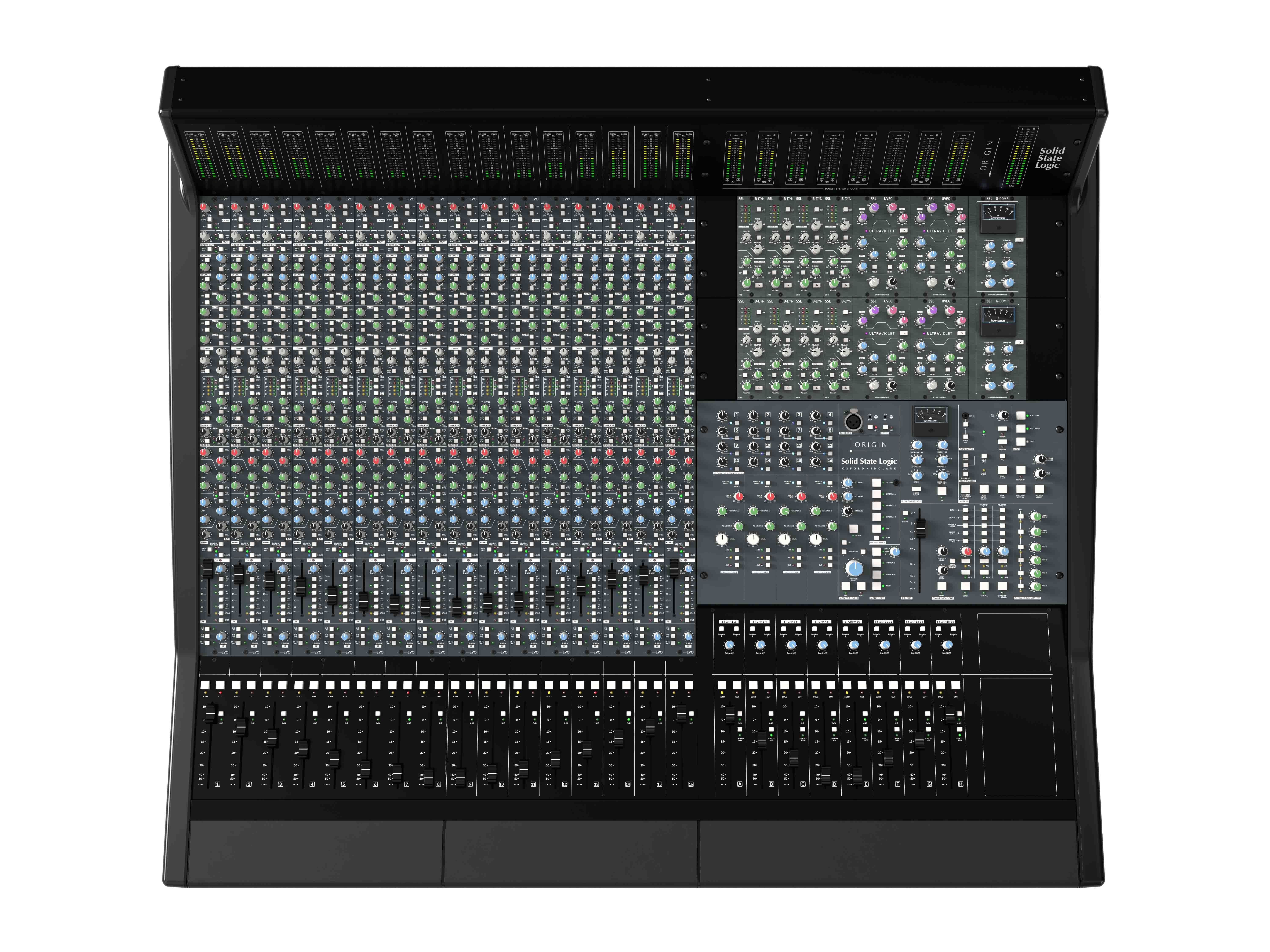 Der Mix-Bus des ORIGIN EVO mit hoher Headroom-Reserve sorgt in Kombination mit dem verbesserten Bus-Kompressor und zukunftsweisenden Routing-Funktionen für Mixe mit analoger Wärme, kreativem Biss sowie dem bekannten SSL-„Glue“ und -„Punch“. Der erweiterte modulare Mittelblock des ORIGIN EVO ist sowohl in einer 32- als auch in einer 16-Kanal-Version erhältlich und bietet echte Hands-on-Steuerung sowie ergonomische Freiheit für hybride Workflows. Er lässt sich nahtlos mit einem UF8-DAW-Controller oder 19-Zoll-Prozessoren integrieren und sorgt dafür, dass die Workstation und die Outboard-Prozessoren genau dort platziert sind, wo Sie sie benötigen.