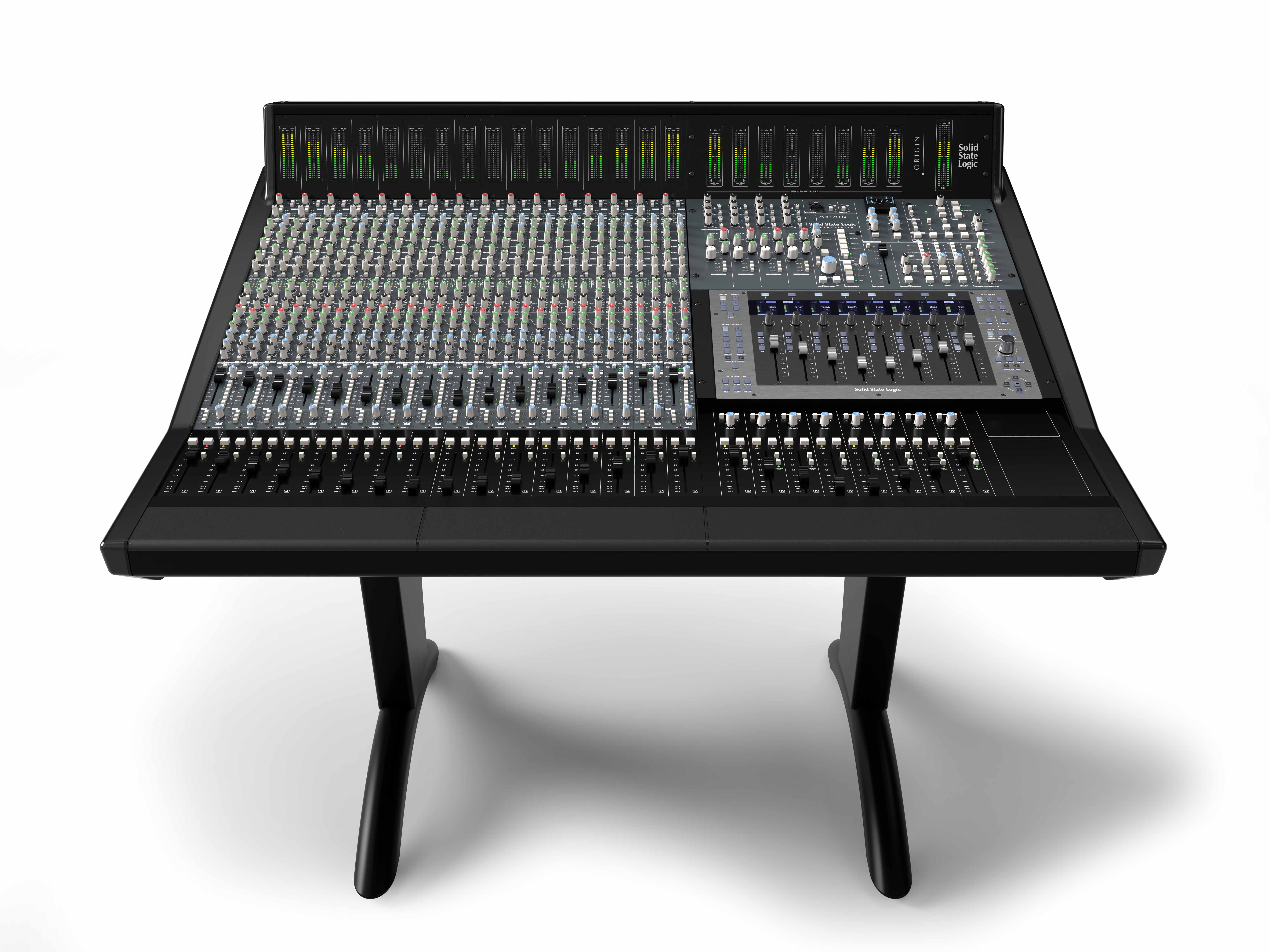 Eines der zentralen Designprinzipien hinter dem ORIGIN EVO ist der authentische Klang der E-Serie, der durch hybride Produktionsabläufe und Ergonomie umgesetzt wird. Das Herzstück bildet ein 19-Zoll-Modulblock im Rackformat, der sich an unterschiedliche Bedienprioritäten anpassen lässt und Platz für individuelle externe Signalbearbeitung bietet, sodass der Toningenieur stets im optimalen Arbeitsbereich bleibt und die Steuerung sowie die Signalbearbeitung der Workstation in Reichweite hat.