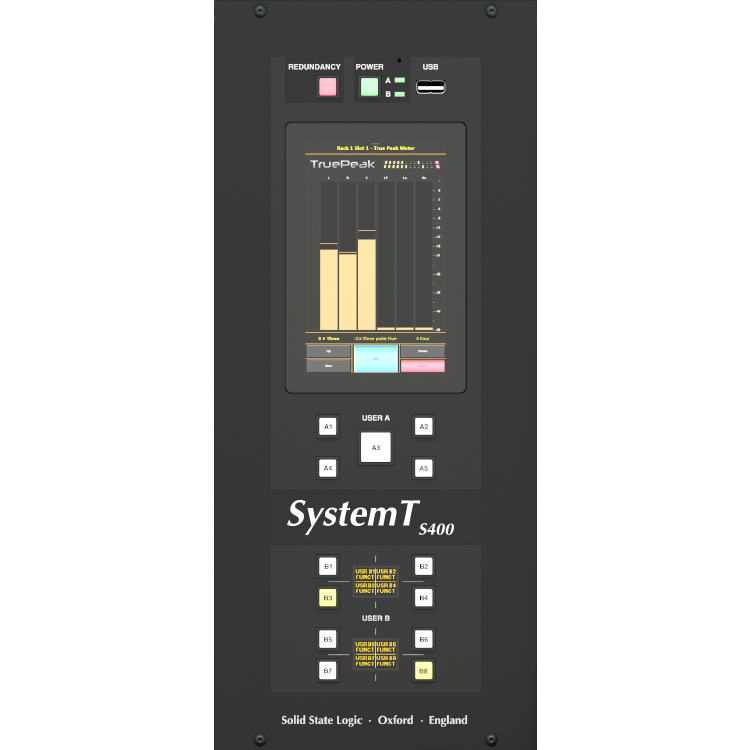 Das S400 ist das neueste Bedienpult der System T-Reihe von SSL und vereint die wesentlichen Vorteile dedizierter Fader-Displays und Pegelanzeigen in einem kompakten, kostengünstigen Gehäuse. Das S400 ist neben dem S500, S500m, S300, TCR und TCA erhältlich und kann in Ausführungen mit 16, 32 und 48 Fadern bestellt werden.