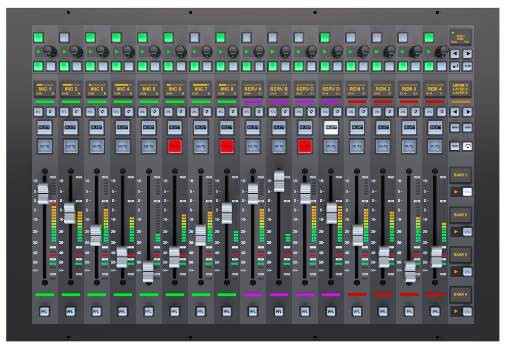Die Bedienelemente des S400 bieten dasselbe Fader-Erlebnis wie das bekannte und beliebte S500, mit hochwertigen Fadern, einem eigenen OLED-Display für jeden Kanal, fortschrittlicher Pegelanzeige sowie Status-LEDs für Dynamik, Automix und externe Steuerung. All dies ist in einem kompakten Gehäuse untergebracht, das sich für Studio-, Außenübertragungs-, Veranstaltungs- und Musikanwendungen eignet.