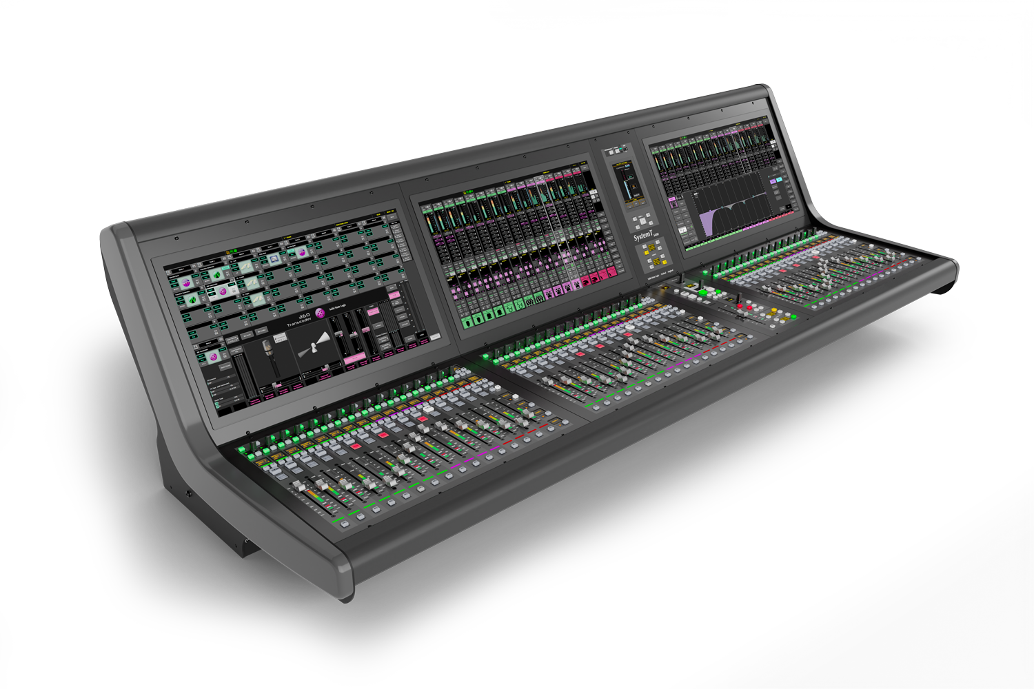 Der einzigartige Ansatz von SSL System T ermöglicht es, dass alle Bedienoberflächenvarianten dieselbe Software nutzen, was für vollständige Flexibilität und Interoperabilität über die gesamte Produktpalette hinweg sorgt. Alle Bedienoberflächen profitieren von allen Softwarefunktionen, darunter vollständiges AoIP-Routing vom Mischpult aus, DAW-Steuerung, Immersive Audio, Dynamic Automation, Zugriffskontrolle, Event Manager, Szenenautomatisierung und ein voll ausgestattetes integriertes FX-Rack.