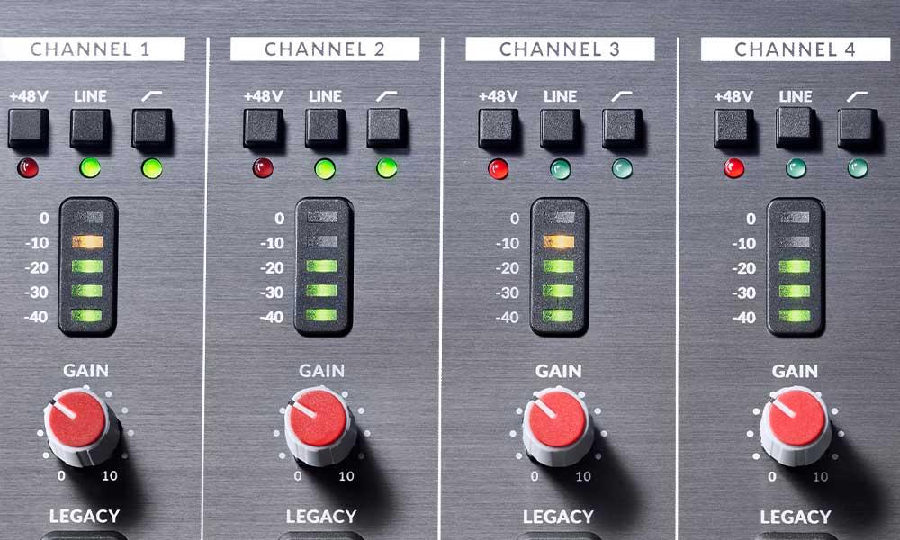 4 detailreiche Mikrofonvorverstärker, die jede Nuance jeder Darbietung einfangen, mit ausreichend Verstärkung für jedes Mikrofon, das Sie anschließen. Unser zweistufiges Design nutzt eine Kombination aus speziell ausgewählten, rauscharmen Einzeltransistoren und ICs, was zu einer außergewöhnlich rauscharmen Leistung (-130 dBu EIN) und einem hervorragenden Verstärkungsbereich (62 dB) führt.